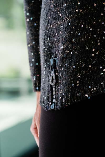 O. Alta Moda Cashmere Fine & Luna Crystal Zipper Pullover Link to pattern details |