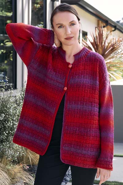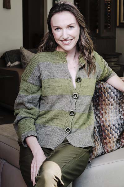 V. Gemini & Gemini Tweed Striped Ridge Cardigan Link to pattern details |