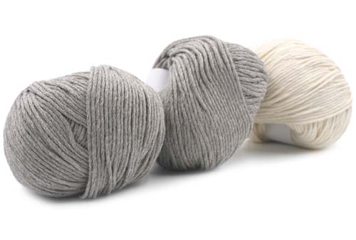 75% Organic Cotton, 25% Yak50 grams, +/- 95 yards 18 sts = 4" on #9 U.S. Needle Weight: Aran