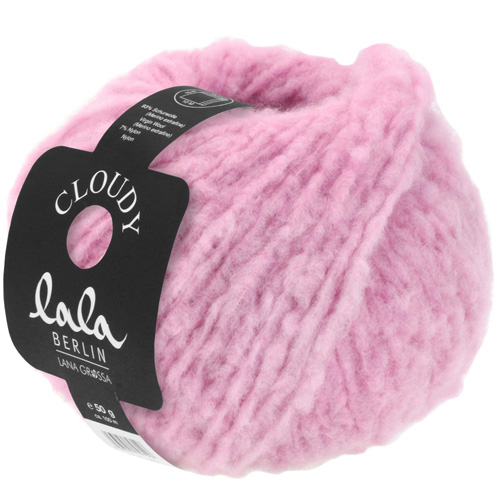 If soft and cuddly is what you love then Lala Cloudy is the yarn for you. Super soft open spun Merino fiber that is injected into a tight nylon base. The fiber bulks up when it is washed and dyed but stays remarkably light. Beautiful clear colors make it easy to knit this 2 color pullover.